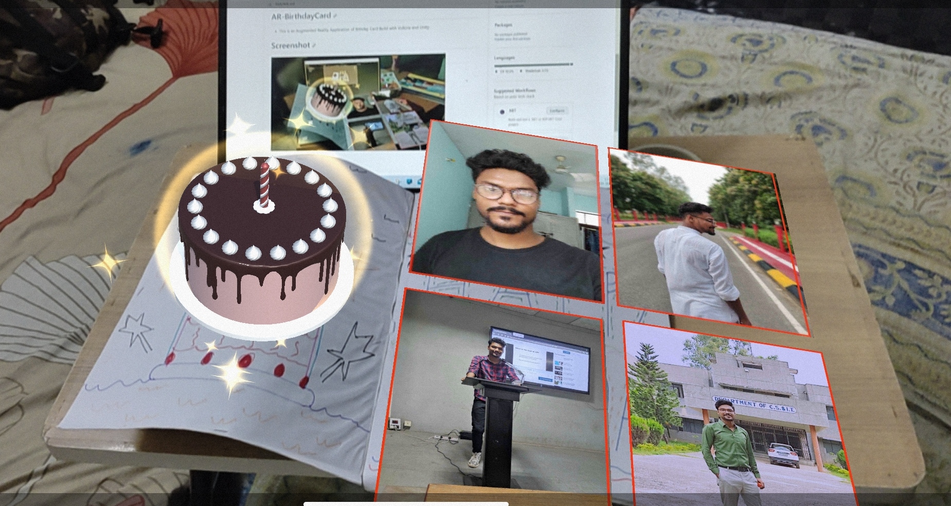The "AR Birthday Card" is an augmented reality (AR) application that transforms traditional greeting cards into interactive and memorable experiences. This project showcases expertise in marker-based AR technology, allowing users to augment photos, videos, and 3D models, such as birthday cakes, onto physical birthday cards. It introduces a creative and personalized way to convey heartfelt wishes and celebrate special occasions.