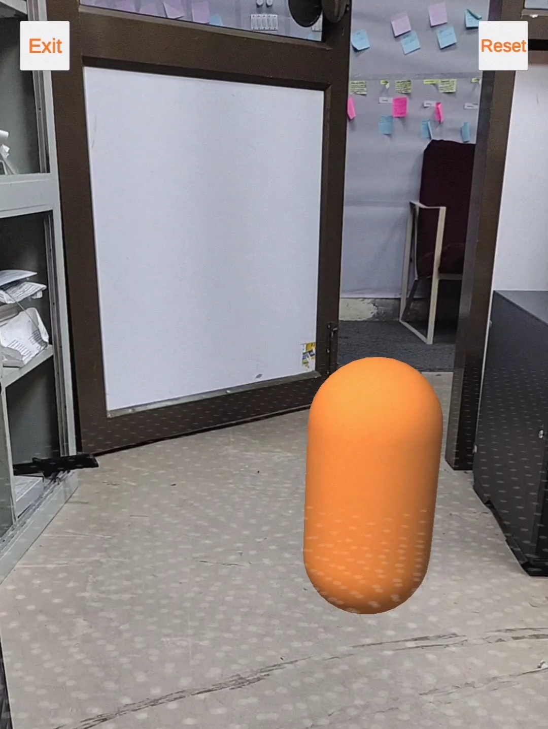 AR Tap Object" is an exciting augmented reality (AR) application that demonstrates expertise in marker-less AR technology. This project offers a straightforward yet engaging user experience. When users launch the app, it scans the environment for a suitable plane and then allows them to interact with a 3D capsule model by tapping on the screen. The model's position changes in real-time, creating an interactive and dynamic AR experience.